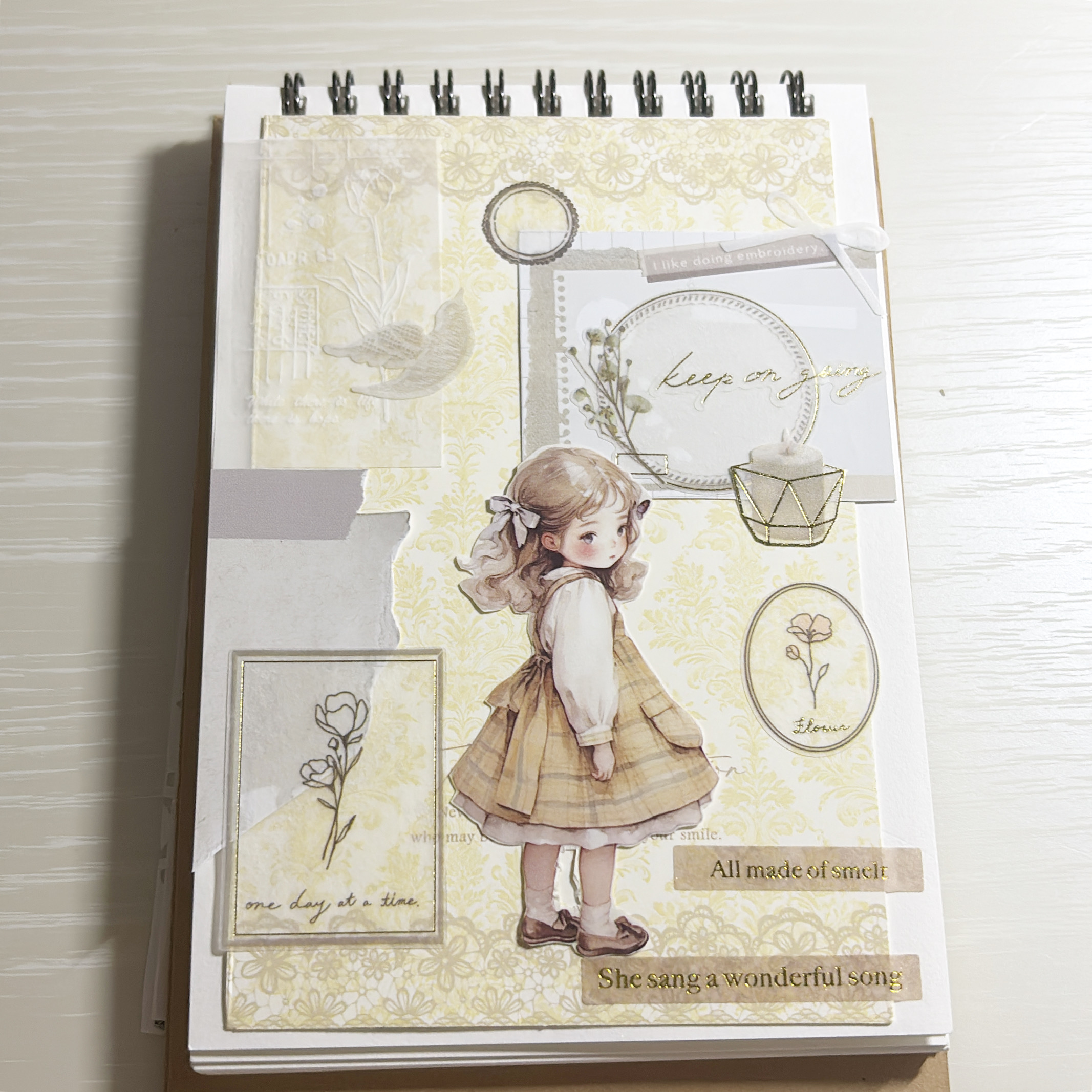 シールやトレーシングペーパー、マステなど、「質感が違う素材」を重ねると、簡単に奥行き感が出ます。